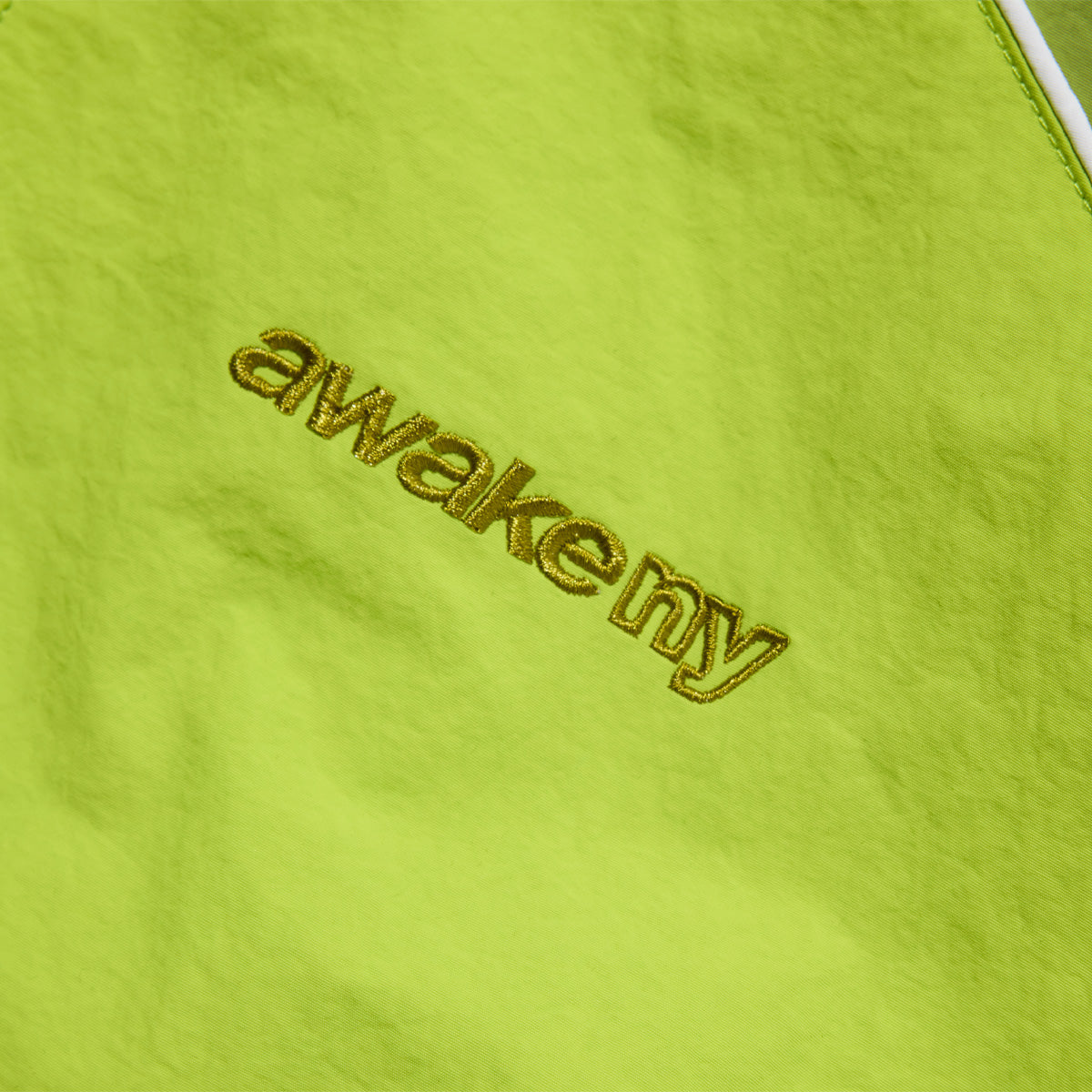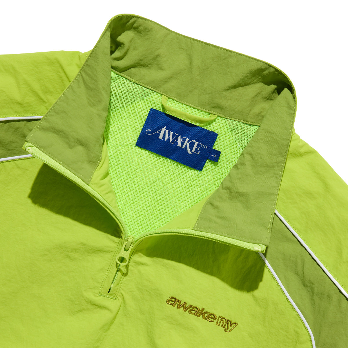 Nylon track quarter-zip jacket with adjustable drawcord hem and logo patch.