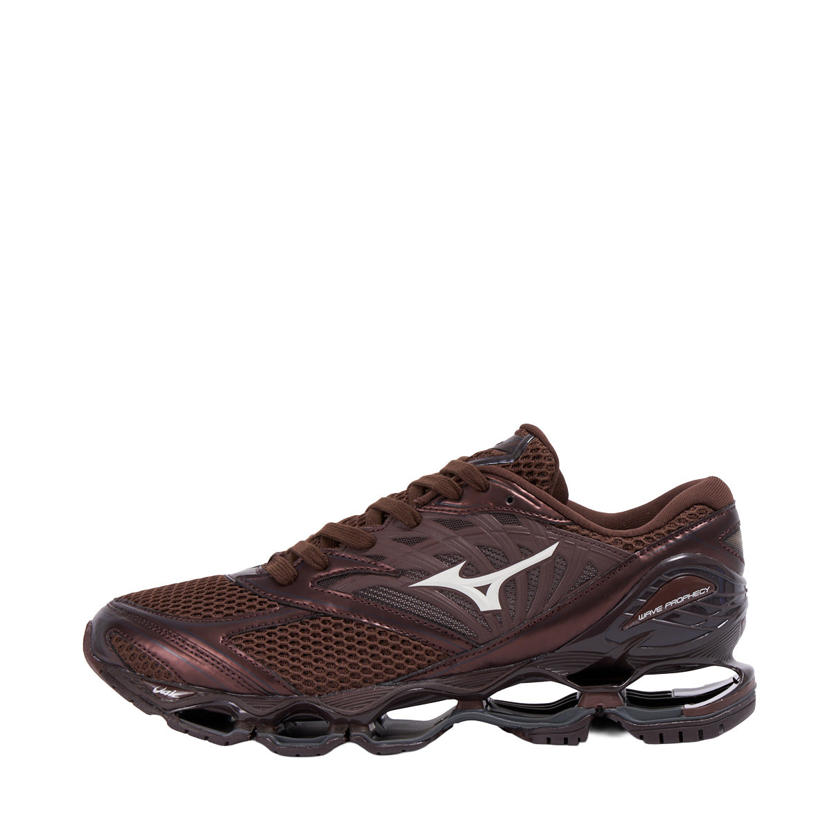 Launched in 2012, the Prophecy did not go unnoticed, and it’s still creating a stir today. This Y2K inspired iteration, on which the silver overlay compliments rich 3D air mesh, is not an exception. This is without a doubt one of the most futuristic-looking shoes ever created, and it highlights Mizuno’s gift in structural technology. The signature infinity wave was engineered to make it lighter and more flexible, while maintaining stability and grip thanks to the outsole. This style is the epitome of Mizuno’s minimalistic and refined aesthetic, and it stands for quality and care in every aspect of sourcing and production. It stands for every little detail having a purpose too. Bringing the game-changing technologies of Wave Prophecy silhouette from running into the Sportstyle range provides a unique option for those seeking maximum performance in everyday use.